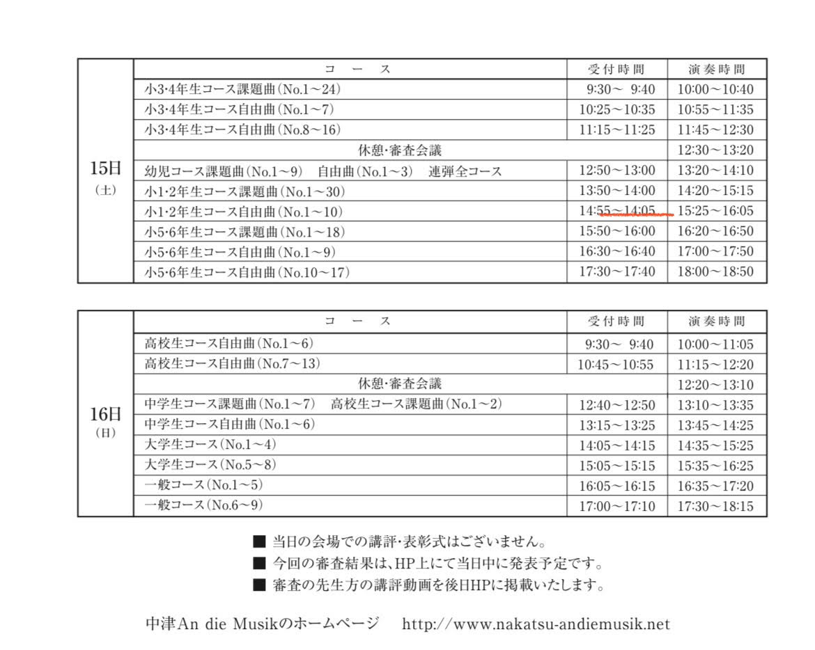 ※訂正・・・小学1・2年生コース自由曲の受付時間は、「14:55~15:05」です。