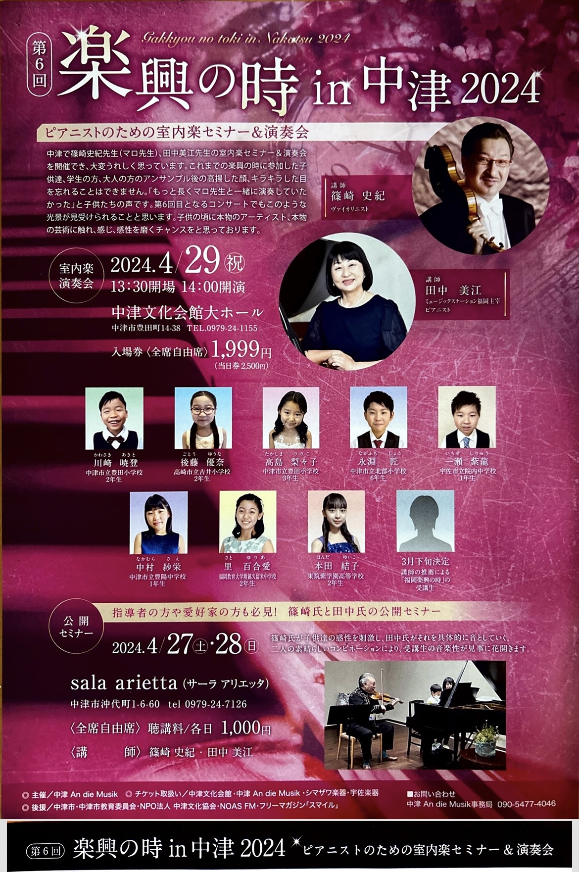 ● 室内楽演奏会 4月29日(祝) 中津文化会館